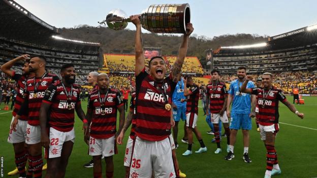 Gomes only made his debut in November 2020 but has also won the Brazilian Serie A league title and domestic cup with Flamengo.